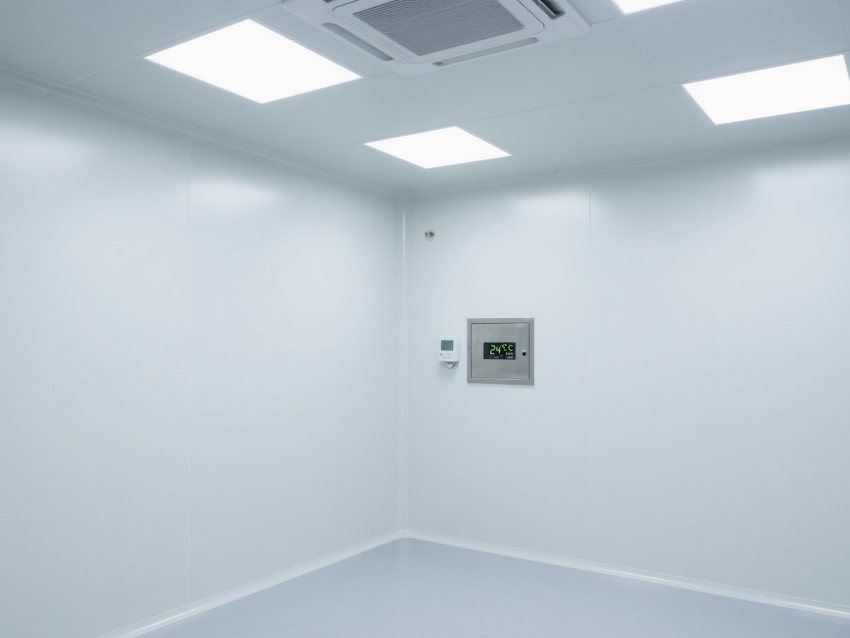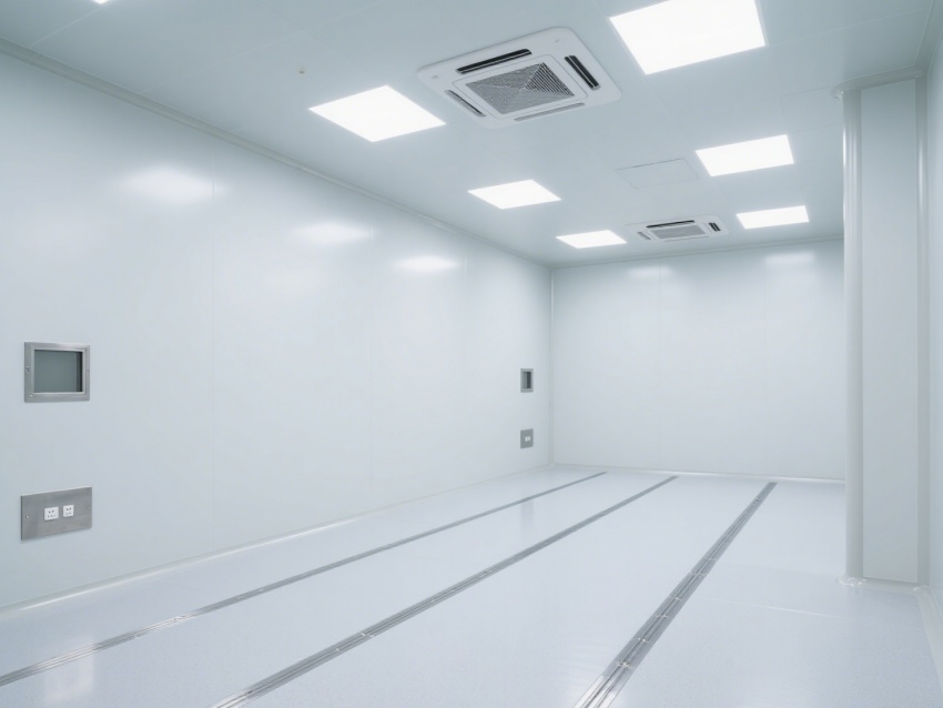 該車間完全符合電子行業十萬級潔凈標準,適用于半導體封裝、電子元器件組裝等場景,無設備的通透空間可靈活適配各類電子生產設備布局,從空間設計層面保障電子產品生產過程的無塵、防靜電需求,降低產品不良率。