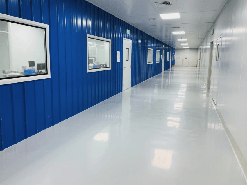 淺灰導電環(huán)氧地坪系統(tǒng)電阻值穩(wěn)定在10^6-10^9Ω,添加石英砂耐磨骨料,使用壽命達10年以上;