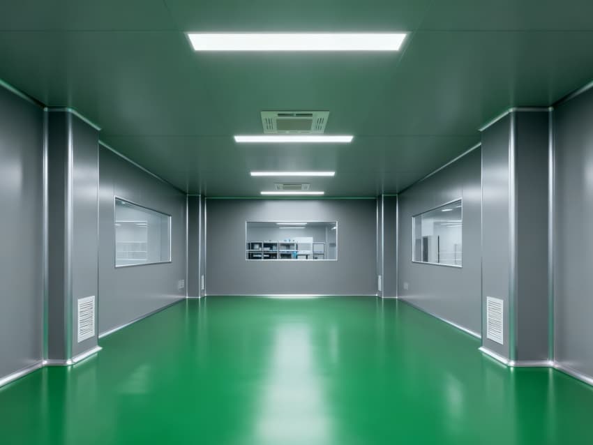 萬級:可選用PVC卷材或聚氨酯地坪,重點保障無縫隙與耐磨易清潔,電阻值滿足10?-10?Ω即可,基層打磨找平后含水率需≤8%再施工。?