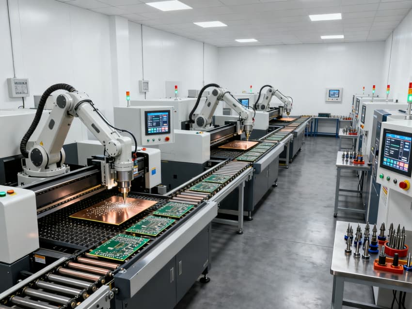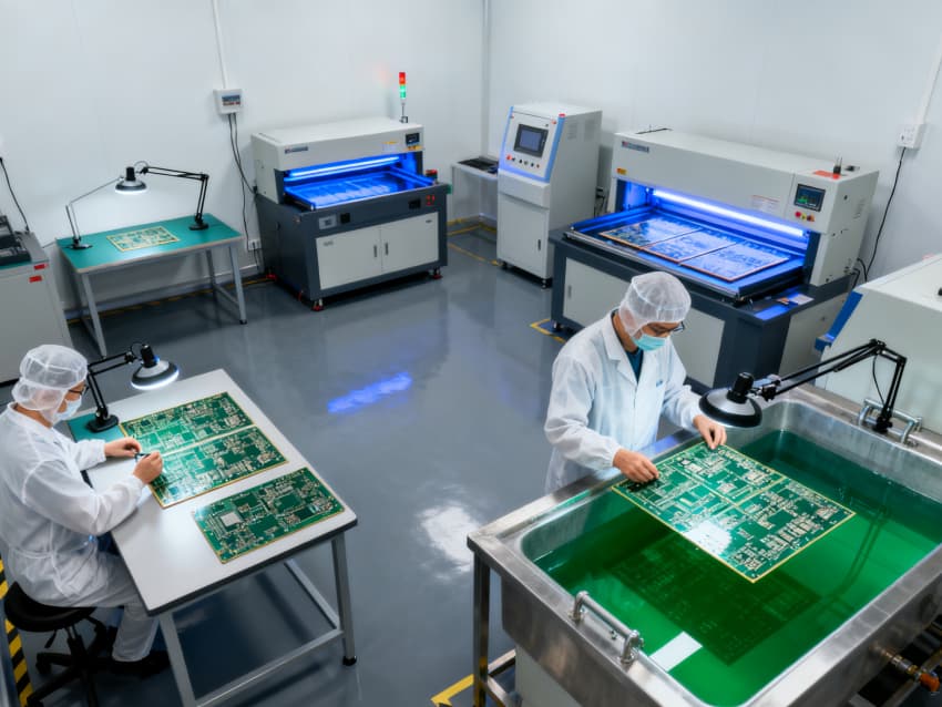 各車間功能定位清晰,適配全生產(chǎn)鏈路:基板裁切車間預留大型裁切設備安裝位,空間開闊便于物料轉(zhuǎn)運;光刻車間采用密閉式布局,預留恒溫恒濕及避光系統(tǒng)接口;蝕刻車間強化通風管道預留,適配酸堿試劑使用需求;鉆孔車間預留高精度鉆孔機安裝基礎,地面做防震處理;阻焊車間側(cè)重潔凈防護,預留噴涂設備工位;成型車間規(guī)劃物料緩存區(qū)與成品檢測區(qū);測試車間預留各類檢測儀器接口;包裝車間劃分潔凈包裝區(qū)與周轉(zhuǎn)區(qū)。